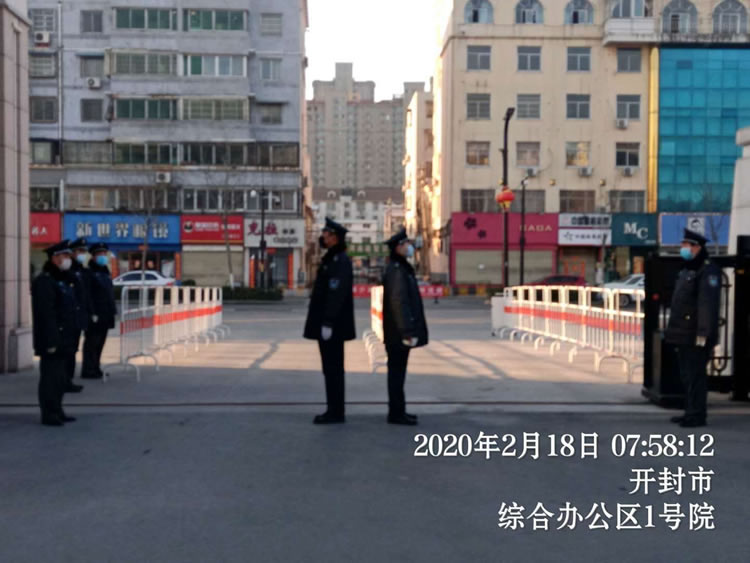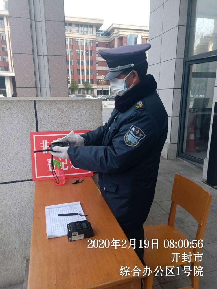5、河南省軍區(qū)開封離職干部休養(yǎng)所崗點的保安員盡職盡責。接到防疫任務后,保安員實行全封閉管理,隊員24小時堅守崗位,嚴格控制進出人員,承擔著出入人員體溫測量、車輛消毒、軍干所場所的消毒任務,并做好登記工作。