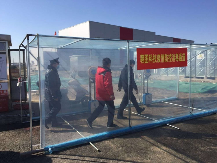 2、翱翔科技有限公司防疫嚴密,利用公司產(chǎn)品設(shè)立防疫消毒通道,保安員負責測量人員體溫、登記,監(jiān)督人員在防疫通道消毒后進入廠區(qū)。