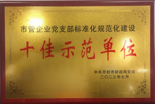 8月10日,在市財(cái)政局召開的市管國有企業(yè)黨支部標(biāo)準(zhǔn)化規(guī)范化建設(shè)驗(yàn)收表彰大會(huì)上,我公司黨支部榮獲“開封國企黨建十佳示范支部”稱號(hào)。